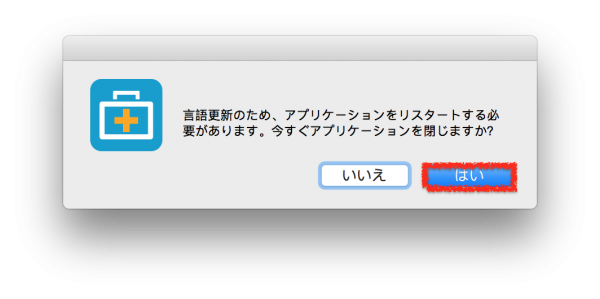 「はい」をクリックして、一旦ソフトを再起動します。