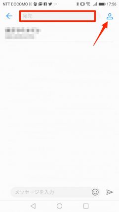連絡帳から選びたい場合は右の人のマークをタッチします。(ここが+マークの場合もあります。また•••のマークだった場合はメニューが開くので、メニューが開いた後に追加とあるものを選びタッチします。)