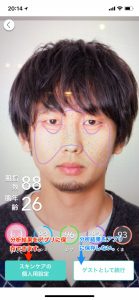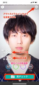 白い円の中に綺麗に顔が納まると、白い円は消え、肌指数と肌年齢が表示されます。