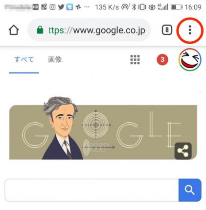 設定の開き方はGoogle Chromeのブラウザを開いて右上の…をクリックします。