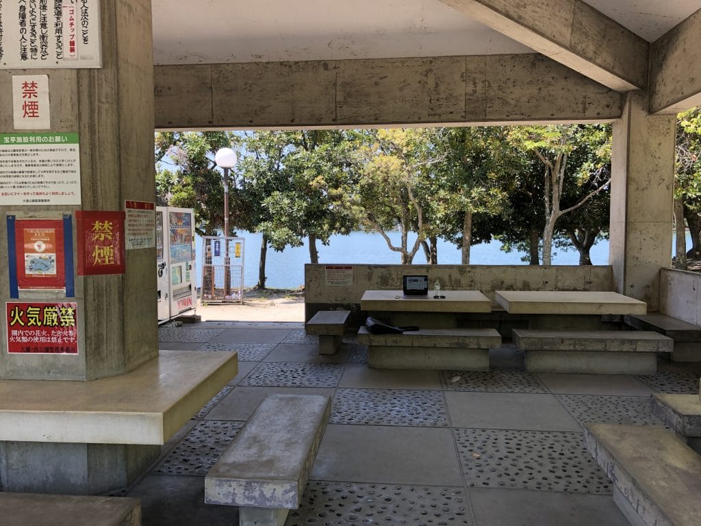 - 休憩所にはキャッシュレス対応の自動販売機がある